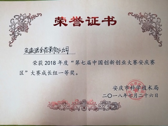 恭祝我公司于2018年7月26日获得“第七届中国创新创业大赛安庆赛区一等奖”,并将代表安庆市参加省级决赛